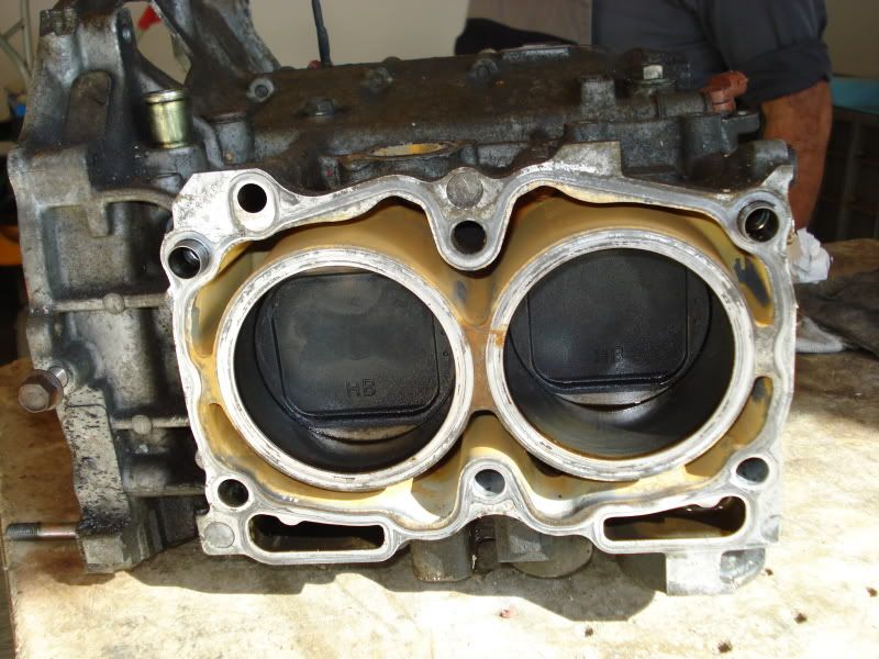 Ich denke, es ist ein Pleuellagerschaden auf dem ersten und dritten Zylinder. Man erkent dort abdrücke auf den Kolben, die vom Kopf stammen müßten.